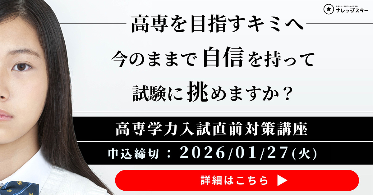 高専保護者相談会のお申し込みありがとうございます 【後ほどメールにて詳細をご案内します。】 24時間経過後もメールがこない場合は、御入力いただいた情報に不備がある可能性がありますので、ご確認の上再度お申し込みください。 (24時間経過前に複数回申し込む等の行為はご遠慮ください。) \締切まであとわずか!/10日間で点数を25点上げる! 詳細&お申し込みはこちら! 高専入試・高専の情報番組「みんなの高専チャンネル」 チャンネルはこちら 高専受験生・高専生向けの情報ブログ「みんなの高専ノート」 ブログはこちら ホーム » 高専保護者相談会のお申込みありがとうございます