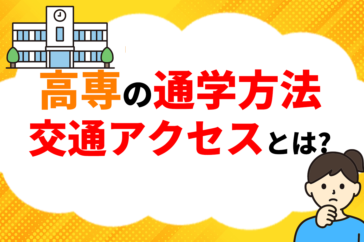 A.高専の通学方法は、地域により多様で、電車・自転車・バスなどを組み合わせたり、寮生は通学時間がほとんどないのが特徴です。