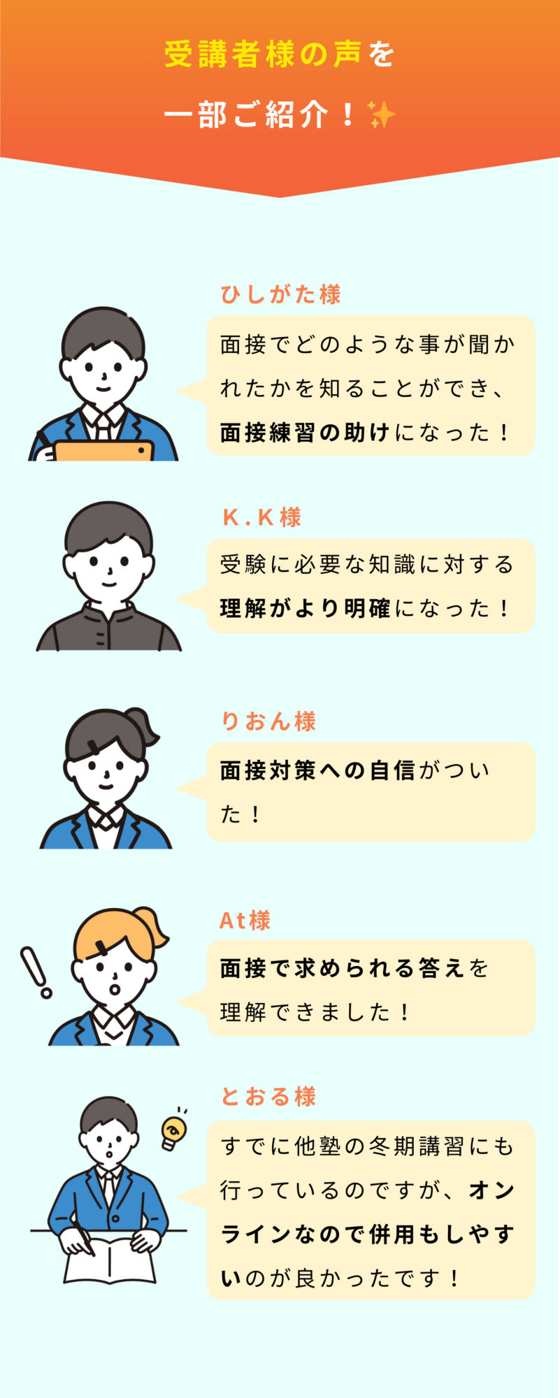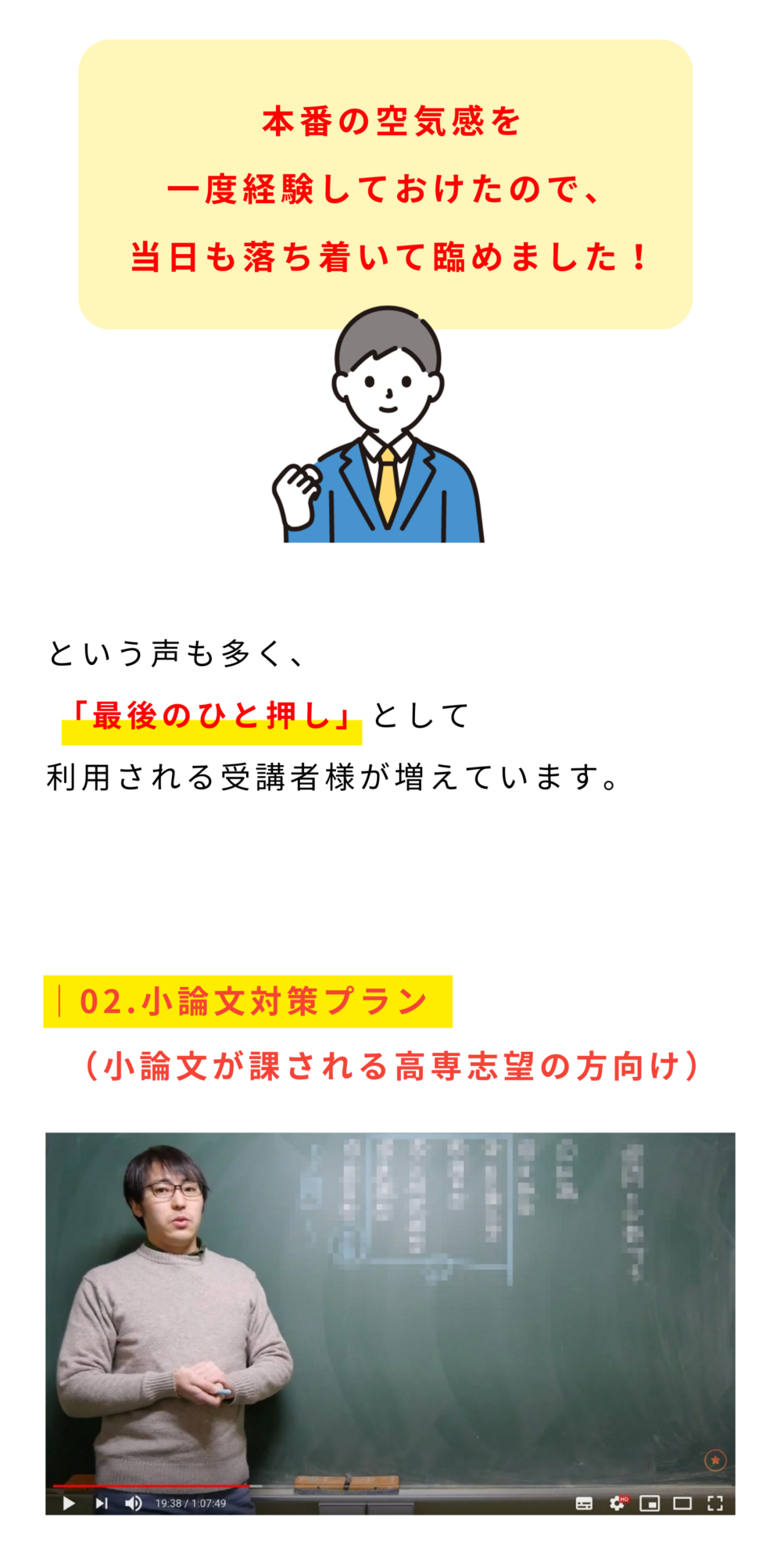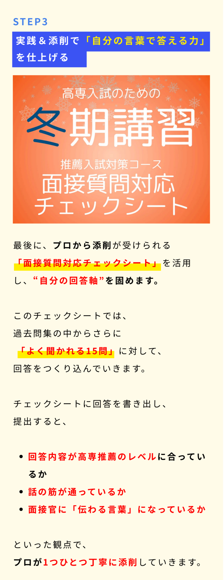 今後の5年間を決める特別な受験。高専特化で合格に近づきませんか? オンライン冬期講習 申込締切:2025/12/16(火) \初めての方・塾生以外も大歓迎!/ より詳しい情報はこちら! すでに650名以上がお申し込み! 今後の5年間を決める特別な受験。高専特化で合格に近づきませんか? オンライン冬期講習 申込締切:2025/12/16(火) \初めての方・塾生以外も大歓迎!/ より詳しい情報はこちら! すでに650名以上がお申し込み! 今後の5年間を決める特別な受験。高専特化で合格に近づきませんか? オンライン冬期講習 申込締切:2025/12/16(火) \初めての方・塾生以外も大歓迎!/ より詳しい情報はこちら! すでに650名以上がお申し込み! 今後の5年間を決める特別な受験。高専特化で合格に近づきませんか? オンライン冬期講習 申込締切:2025/12/16(火) \初めての方・塾生以外も大歓迎!/ より詳しい情報はこちら! すでに650名以上がお申し込み! \お電話はコチラから!/ 【対応日時】火曜~金曜 13:00~21:00 土曜・日曜 10:00~19:00 【定休】月曜 メール相談フォームはこちら! ※忙しかったらすぐに切ってもOK※コース説明が目的でしつこい勧誘はありません。 高専に合格したナレッジスター塾生の声▼ よくあるご質問 他の塾に通っていますが冬期講習を受講することは可能ですか? もちろん可能です。ナレッジスターは高専入試特化で対策をしていますので、高専に合格したい方はぜひご受講ください。 予定があり時間通りに受講できない場合どうしたら良いですか? 映像授業ですので後からでも受講することが可能です。ただし時間割通りに進めることでモチベーション維持にも繋がりますので、できる限り時間割通りに受講することを心がけてください。 振り込み期限はいつですか? 最終お振込期限は12/24(水)となります。ただし、お振込いただいた日によって受講開始が異なります。毎週水曜日がお振込み期限となり、翌日木曜日にご案内となります。また、プレミアムコースを受講する場合は、お申し込み日の次の木曜日から順次テキストを発送いたします。遅延時は時間割通りにご受講いただけない場合がございます。 どのコースを受ければいいかわかりません。 TOPページの無料勉強相談からフォームもしくはお電話でお気軽にお問い合わせください。 最短ルートで高専合格に近づく。 オンライン冬期講習 申込締切:2025/12/16(火) \初めての方・塾生以外も大歓迎!/ より詳しい情報はこちら! すでに650名以上がお申し込み! 最短ルートで高専合格に近づく。 オンライン冬期講習 最終締切:2025/12/16(火) \初めての方・塾生以外も大歓迎!/ より詳しい情報はこちら! すでに650名以上がお申し込み! \12/16(火)締切!/ お申し込みはコチラから!