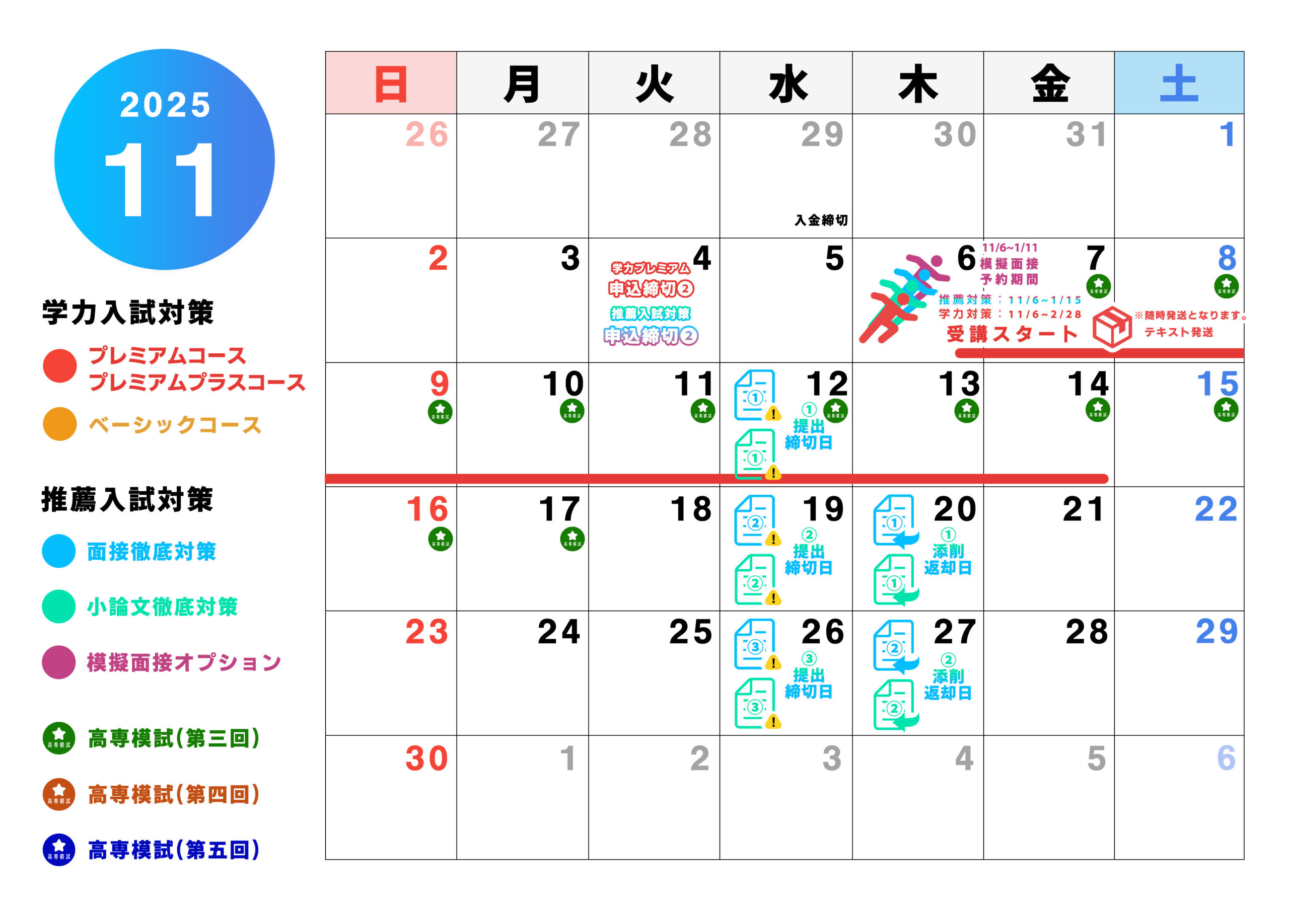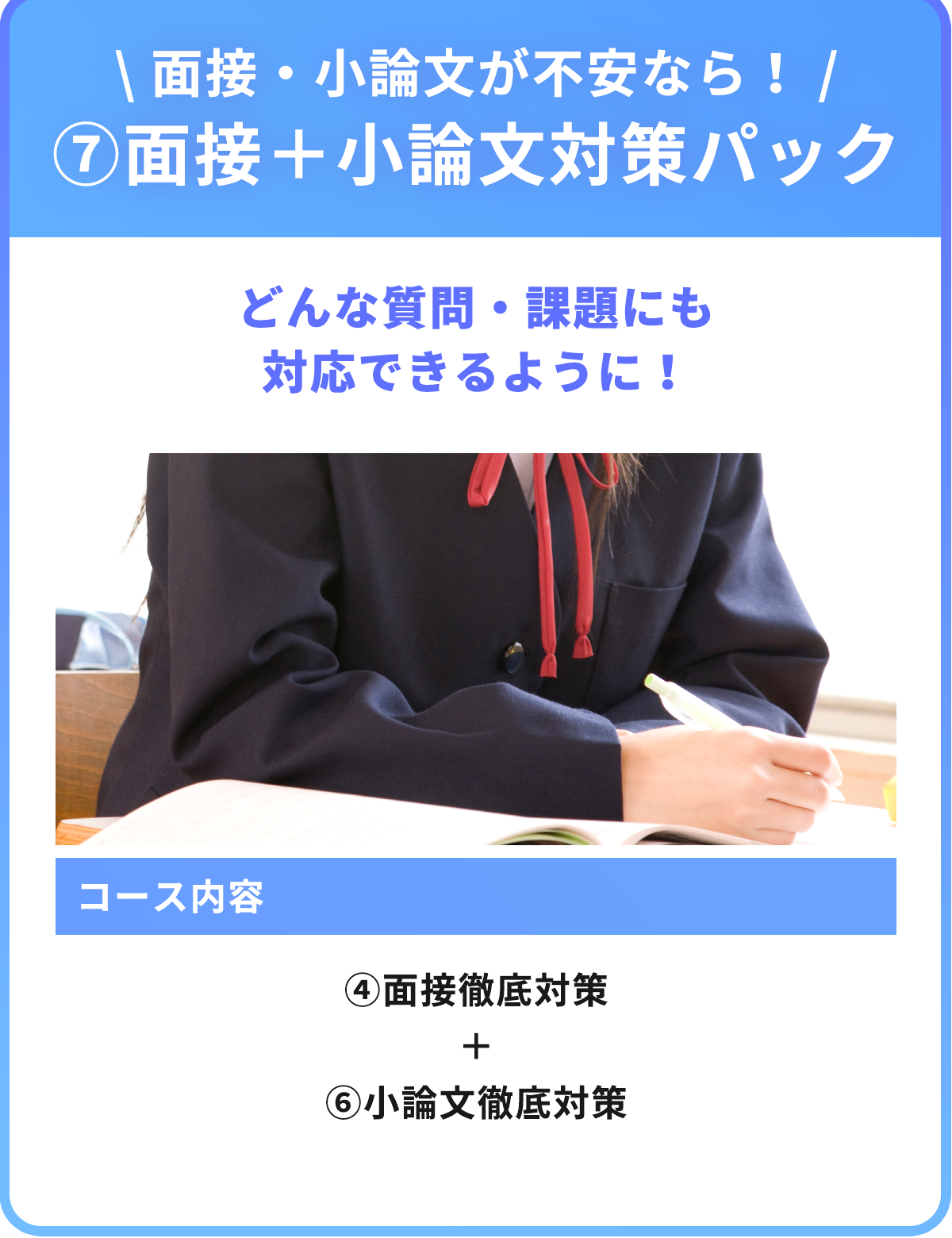 ※本ページは2021年度のものです。2022年度の実施予定は2022年秋ごろ公開予定ですので今しばらくお待ちくださいませ。 —-2025年10月にお申し込み開始予定です。—– \お申し込み受付延長決定!/ 学力/推薦 最短2日で受講開始! ✔︎他塾と併用可!✔︎いつでもどこからでも受講! この冬は、高専生になるための冬。 高専入試特化のオンライン冬期講習。 高専入試指導歴10年 高専指導実績58/58高専 令和7年度高専合格率97.8%※SSC(特別サポート教室)対象者を除く 開催日程:2025/11/6(木)〜2026/02/28(土)申込締切:2025/11/4(火)最終締切:2026/12/23(火) ※現在申込締切日延長期間となっておりますので、お申し込み日によって受講開始日が異なります。 詳しくは、お申し込みをした上でお問い合わせください。 1分で申し込む! 中2生向け冬期講習はこちら! ※本ページは2021年度のものです。2022年度の実施予定は2022年秋ごろ公開予定ですので今しばらくお待ちくださいませ。 2025年10月にお申し込み開始予定です。 学力/推薦 最短2日で受講開始! ✔︎他塾と併用可!✔︎いつでもどこからでも受講! この冬は、高専生になるための冬。 高専入試特化のオンライン冬期講習。 高専入試指導歴10年 高専指導実績58/58高専 令和7年度高専合格率97.8%※SSC(特別サポート教室)対象者を除く 開催日程:2025/11/6(木)〜2026/02/28(土)申込締切:2025/11/4(火)最終締切:2026/12/23(火) 1分で申し込む! 中2生向け冬期講習はこちら! 高専を目指すキミへ。志望高専別に対策ができるナレッジスターのコース別冬期講習。 学力対策コースをチェック! 推薦対策コースをチェック! 高専を目指すキミへ。志望高専別に対策ができるナレッジスターのコース別冬期講習。 学力対策コース内容 推薦対策コース内容 学力試験を受ける予定のキミには!学力入試対策コース! 「この冬から対策を始める」「勉強が不安...」そんなキミにはさらに追加で完全対策!! 基礎から完璧にしたいキミには…!さらにプラスで! 学力試験を受ける予定のキミには! 学力入試対策コース! 「この冬から対策を始める」「勉強が不安...」そんなキミにはさらに追加で完全対策!! 基礎から完璧にしたいキミには…!さらにプラスで! 推薦入試を受ける予定のキミには! 推薦入試対策コース! 推薦入試を受ける予定のキミには! 推薦入試対策コース! さらに!小論文対策も! 推薦対策を完璧にしたい キミにはこちらがおすすめ! 各コースの詳細情報はこちら! 推薦入試を受ける予定のキミには!推薦入試対策コース! ➕ 追加オプションも! ▼さらに!▼ 推薦対策を完璧にしたい キミにはこちらがおすすめ! 各コースの詳細情報はこちら! 【対応日時】火曜~金曜 13:00~21:00 土曜・日曜 10:00~19:00 【定休】月曜 【対応日時】火曜〜金曜:13:00 – 21:00土曜・日曜:10:00 – 19:00【定休】月曜 メール相談フォームはこちら! ナレッジスターの冬期講習は高専入試に完全特化! 申込締切:11月4日(火) 1分で申し込む! コース料金を確認する! 受講を迷っている方へ。これ1本で分かる“冬期講習” 10/28(火)まで早期申込特典も! 高専入試で必須になる豪華7大特典プレゼント! \特典ピックアップ!/ 高専入試攻略会 特別編 動画概要 ・高専入試の最新出題傾向 ・今すぐ取り組むべき入試対策 ・高専対策におすすめの教材 など 各科目ごとに専門講師が徹底解説! 申し込んで特典を受け取る! ※早期申込特典は、10月29日(水)にメールにてお送りいたします。 ナレッジスターの学力入試対策コースとは? 高専入試は公立の一般入試とは全く異なります。 数学は点数が2倍になる傾斜配点を採用し、英語は数学的な内容まで問われ、理科は問題量がかなり多く、社会が試験科目に含まれていない高専もあります。 ナレッジスターの冬期講習を受講すれば、高専入試の仕組みとコツを10日間で習得できます。さらに、高専入試に特化した冬からの勉強法を解説するので高専入試までどうやって勉強したらいいかわからないを解消します。 ナレッジスターの推薦入試対策コースとは? 高専の推薦入試は1月に実施されるので早めの対策が必須です。 また、高専によって試験項目が異なり、高専特有の工学系の質問をされる場合もあります。そこで、ナレッジスターの冬期講習では、全国の高専の推薦入試に対応し、12月初旬から対策を開始できるカリキュラムに変更しました。 多くの過去問を集めた面接過去問集や、面接質問チェックシート、過去の傾向を元に独自開発したオリジナル小論文課題、高専推薦入試本番を想定した模擬面接で、推薦入試に向け、万全な対策ができます。 ナレッジスターの冬期講習は高専入試に完全特化! 申込締切:11月4日(火) 1分で申し込む! コース料金を確認する! ナレッジスターの学力入試対策コースとは? 高専入試は公立の一般入試とは全く異なります。 数学は点数が2倍になる傾斜配点を採用し、英語は数学的な内容まで問われ、理科は問題量がかなり多く、社会が試験科目に含まれていない高専もあります。 ナレッジスターの冬期講習を受講すれば、高専入試の仕組