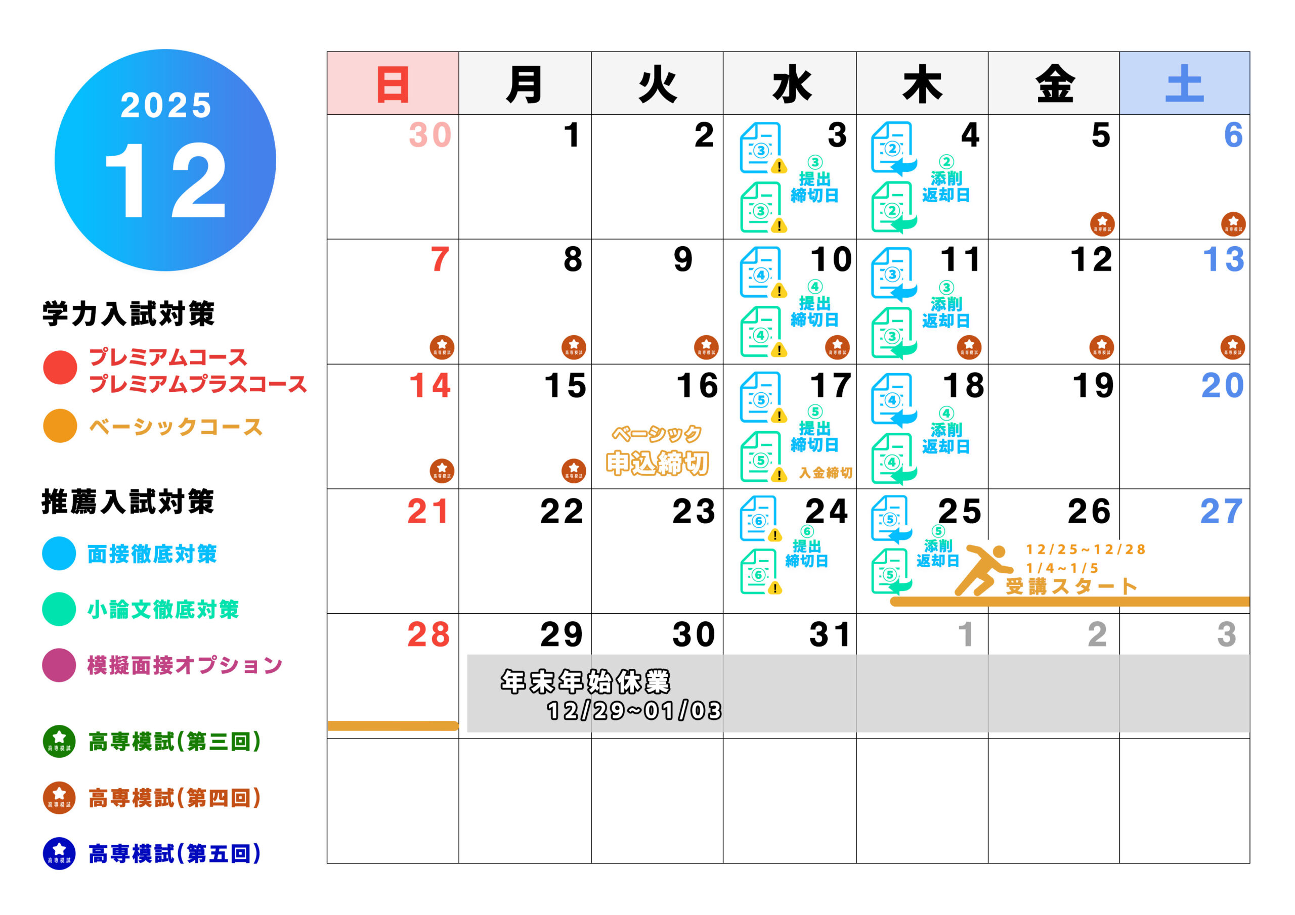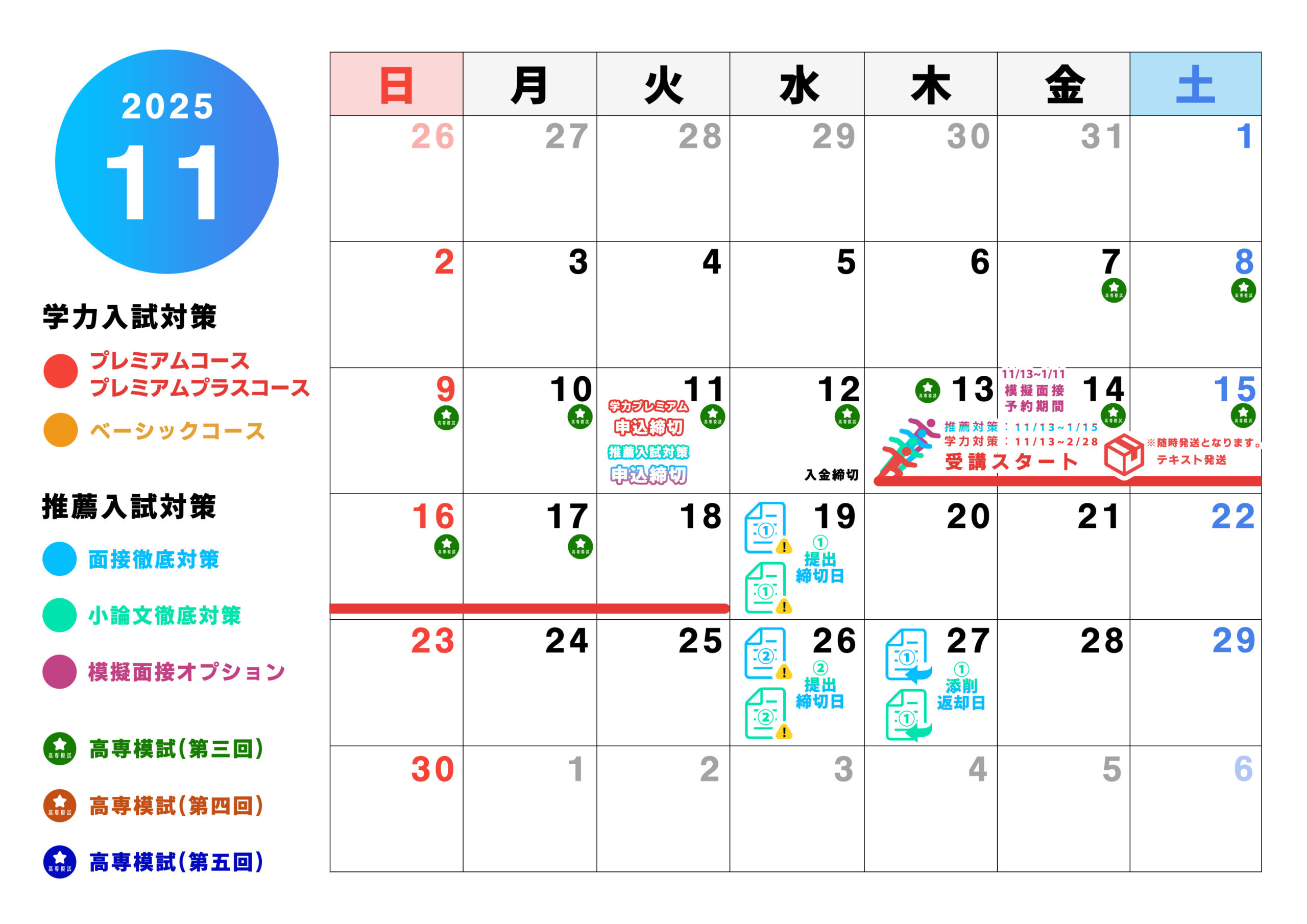 ※本ページは2021年度のものです。2022年度の実施予定は2022年秋ごろ公開予定ですので今しばらくお待ちくださいませ。 —-2025年10月にお申し込み開始予定です。—– \お申し込み受付延長決定!/ 学力/推薦 最短2日で受講開始! ✔︎他塾と併用可!✔︎いつでもどこからでも受講! この冬は、高専生になるための冬。 高専入試特化のオンライン冬期講習。 高専入試指導歴10年 高専指導実績58/58高専 令和7年度高専合格率97.8%※SSC(特別サポート教室)対象者を除く 開催日程:2025/11/6(木)〜2026/02/28(土)申込締切:2025/11/11(火)最終締切:2025/12/23(火) ※現在申込締切日延長期間となっておりますので、お申し込み日によって受講開始日が異なります。 詳しくは、お申し込みをした上でお問い合わせください。 1分で申し込む! 中2生向け冬期講習はこちら! ※本ページは2021年度のものです。2022年度の実施予定は2022年秋ごろ公開予定ですので今しばらくお待ちくださいませ。 2025年10月にお申し込み開始予定です。 学力/推薦 最短2日で受講開始! ✔︎他塾と併用可!✔︎いつでもどこからでも受講! この冬は、高専生になるための冬。 高専入試特化のオンライン冬期講習。 高専入試指導歴10年 高専指導実績58/58高専 令和7年度高専合格率97.8%※SSC(特別サポート教室)対象者を除く 開催日程:2025/11/6(木)〜2026/02/28(土)申込締切:2025/11/11(火)最終締切:2025/12/23(火) 1分で申し込む! 中2生向け冬期講習はこちら! 高専を目指すキミへ。志望高専別に対策ができるナレッジスターのコース別冬期講習。 学力対策コースをチェック! 推薦対策コースをチェック! 高専を目指すキミへ。志望高専別に対策ができるナレッジスターのコース別冬期講習。 学力対策コース内容 推薦対策コース内容 学力試験を受ける予定のキミには!学力入試対策コース! 「この冬から対策を始める」「勉強が不安...」そんなキミにはさらに追加で完全対策!! 基礎から完璧にしたいキミには…!さらにプラスで! 学力試験を受ける予定のキミには! 学力入試対策コース! 「この冬から対策を始める」「勉強が不安...」そんなキミにはさらに追加で完全対策!! 基礎から完璧にしたいキミには…!さらにプラスで! 推薦入試を受ける予定のキミには! 推薦入試対策コース! 推薦入試を受ける予定のキミには! 推薦入試対策コース! さらに!小論文対策も! 推薦対策を完璧にしたい キミにはこちらがおすすめ! 各コースの詳細情報はこちら! 推薦入試を受ける予定のキミには!推薦入試対策コース! ➕ 追加オプションも! ▼さらに!▼ 推薦対策を完璧にしたい キミにはこちらがおすすめ! 各コースの詳細情報はこちら! 【対応日時】火曜~金曜 13:00~21:00 土曜・日曜 10:00~19:00 【定休】月曜 【対応日時】火曜〜金曜:13:00 – 21:00土曜・日曜:10:00 – 19:00【定休】月曜 メール相談フォームはこちら! ナレッジスターの冬期講習は高専入試に完全特化! \初めての方・塾生以外も大歓迎!/ 申込締切:11月11日(火) 1分で申し込む! コース料金を確認する! 受講を迷っている方へ。これ1本で分かる“冬期講習” 10/28(火)まで早期申込特典も! 高専入試で必須になる豪華7大特典プレゼント! \特典ピックアップ!/ 高専入試攻略会 特別編 動画概要 ・高専入試の最新出題傾向 ・今すぐ取り組むべき入試対策 ・高専対策におすすめの教材 など 各科目ごとに専門講師が徹底解説! 申し込んで特典を受け取る! ※早期申込特典は、10月29日(水)にメールにてお送りいたします。 ナレッジスターの学力入試対策コースとは? 高専入試は公立の一般入試とは全く異なります。 数学は点数が2倍になる傾斜配点を採用し、英語は数学的な内容まで問われ、理科は問題量がかなり多く、社会が試験科目に含まれていない高専もあります。 ナレッジスターの冬期講習を受講すれば、高専入試の仕組みとコツを10日間で習得できます。さらに、高専入試に特化した冬からの勉強法を解説するので高専入試までどうやって勉強したらいいかわからないを解消します。 ナレッジスターの推薦入試対策コースとは? 高専の推薦入試は1月に実施されるので早めの対策が必須です。 また、高専によって試験項目が異なり、高専特有の工学系の質問をされる場合もあります。そこで、ナレッジスターの冬期講習では、全国の高専の推薦入試に対応し、12月初旬から対策を開始できるカリキュラムに変更しました。 多くの過去問を集めた面接過去問集や、面接質問チェックシート、過去の傾向を元に独自開発したオリジナル小論文課題、高専推薦入試本番を想定した模擬面接で、推薦入試に向け、万全な対策ができます。 ナレッジスターの冬期講習は高専入試に完全特化! \初めての方・塾生以外も大歓迎!/ 申込締切:11月11日(火) 1分で申し込む! コース料金を確認する! ナレッジスターの学力入試対策コースとは? 高専入試は公立の一般入試とは全く異なります。 数学は点数が2倍になる傾斜配点を採用し、英語は数学的な内容まで問われ、理科は問題量がかなり多く、社会が試験科目に含まれていない高専